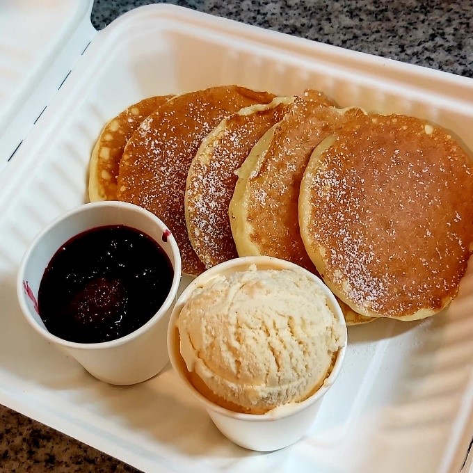 »Naše ekstra puhaste palačinke v družbi vročega jagodičevja in vanilijevega sladoleda ... mnjaammm ... Pa še par žlic smetane zraven, kar tako, saj ni vsak dan. Kot, da bi jedel Pohorsko omleto, po kateri je že pred 'davnimi' leti bila poznana hiša.«
