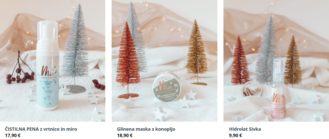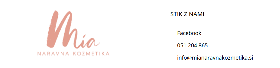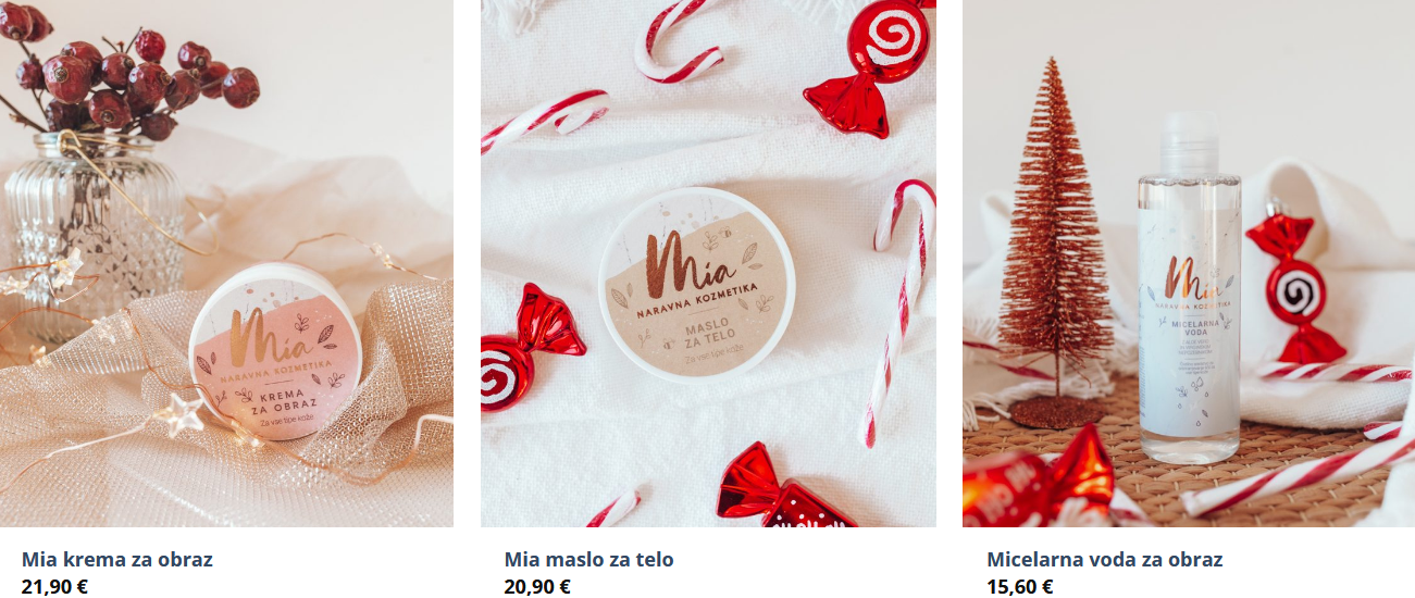 Mia je ročno narejena, slovenska in 100% naravna kozmetika, ki ne vsebuje konzervansov, barvil ter ni testirana na živalih. Njihovi skrbno in butično izbrani izdelki zagotovljeno predstavljajo najboljše, kar lahko nudite sebi oziroma svoji koži.