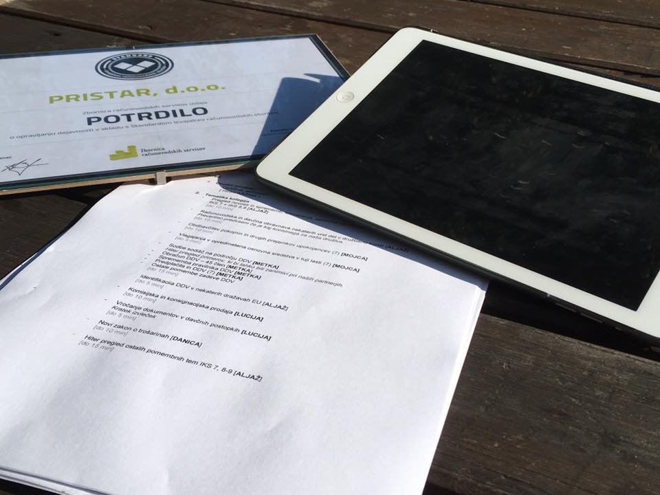 V petek 26.8.2016 smo v podjetju Pristar d.o.o. opravili prvi po-dopustniški strokovni kolegij. Vreme je bilo primerno, da stvar opravimo »nekoliko drugače«. Pograbili smo svoja gradiva in se odpravili na bližnje športno igrišče, kjer smo v delovnem vzdušju preživeli preostanek službe.