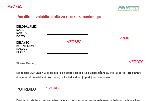 Za boniteto v obliki obdaritve delojemalčevih otrok pa pod izpolnjenimi pogoji iz 39/4 ZDoh-2 (starost otroka do 15 let, vrednost darila do 42 EUR, obdaritev decembra) velja, da ni obdavčena z dohodnino in posledično prispevki za socialno varnost, tudi če delodajalec delojemalcu ali njegovemu otroku zagotovi denar za nakup darila (na primer z namenom, da otrok prejme primerno darilo glede na njegovo starost).